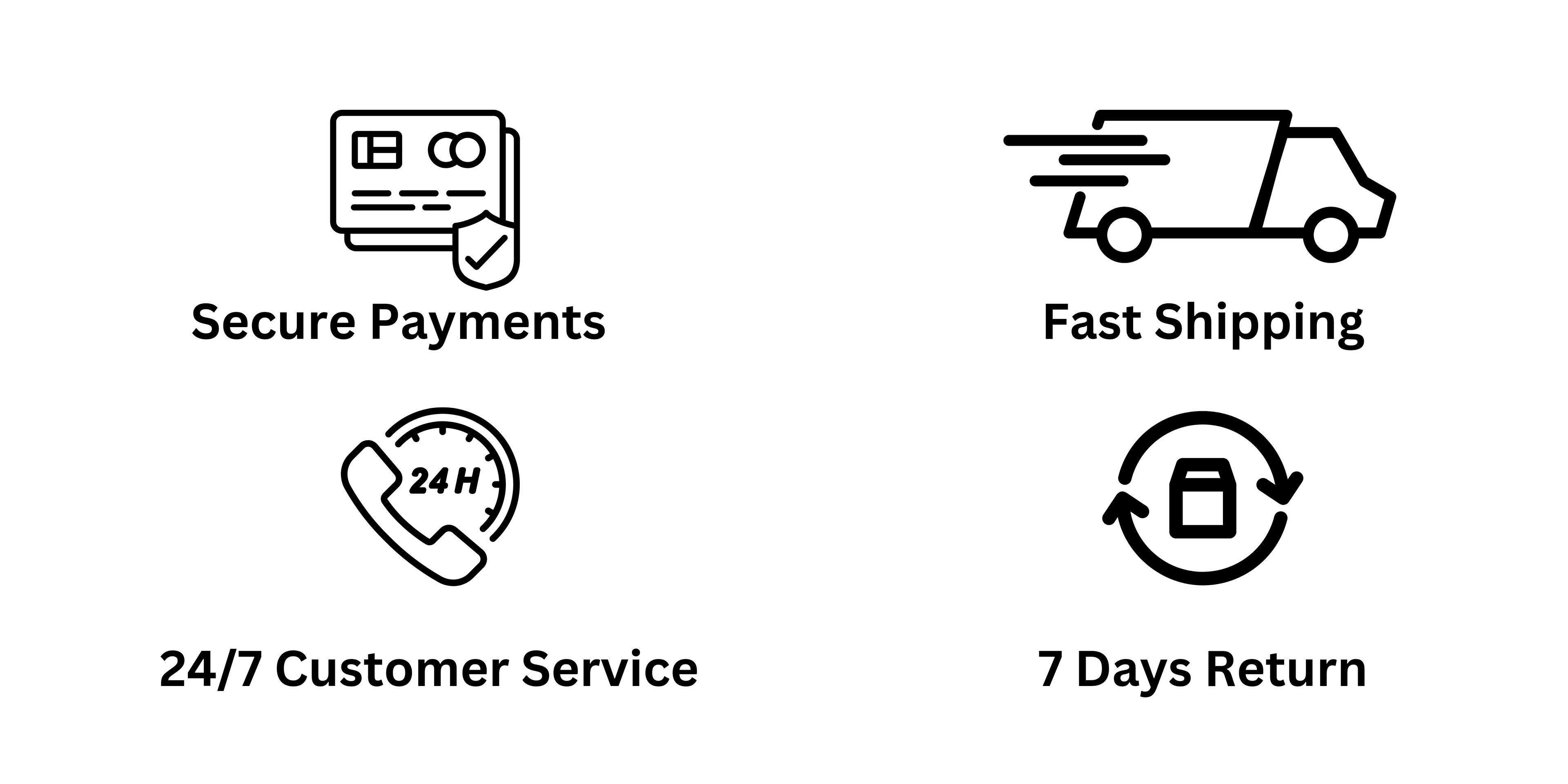 Enjoy a seamless shopping experience with fast shipping on all orders, secure payment options for peace of mind, 24/7 customer service to assist you anytime, and 7-day returns for easy hassle-free exchanges. Shop with confidence today!